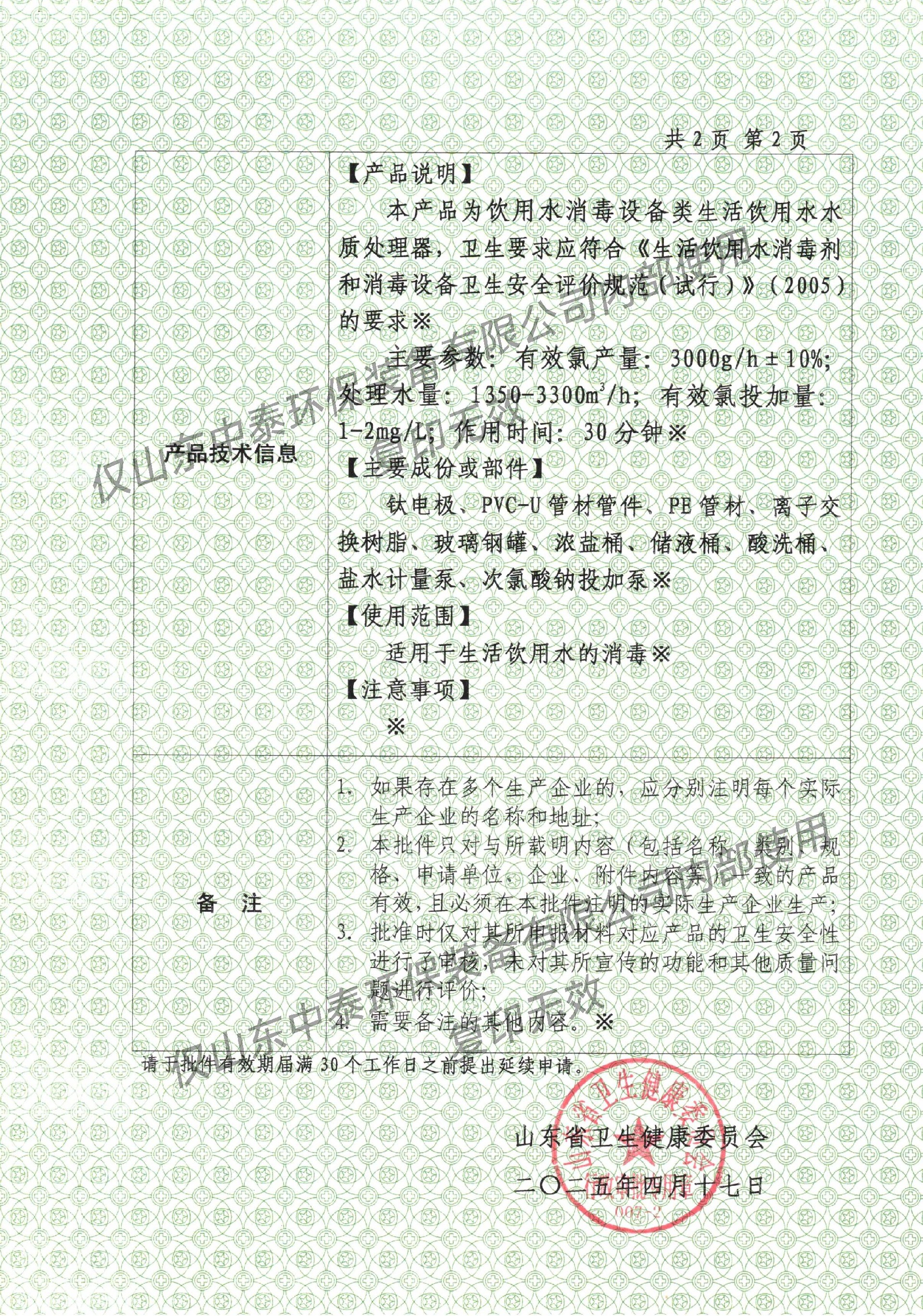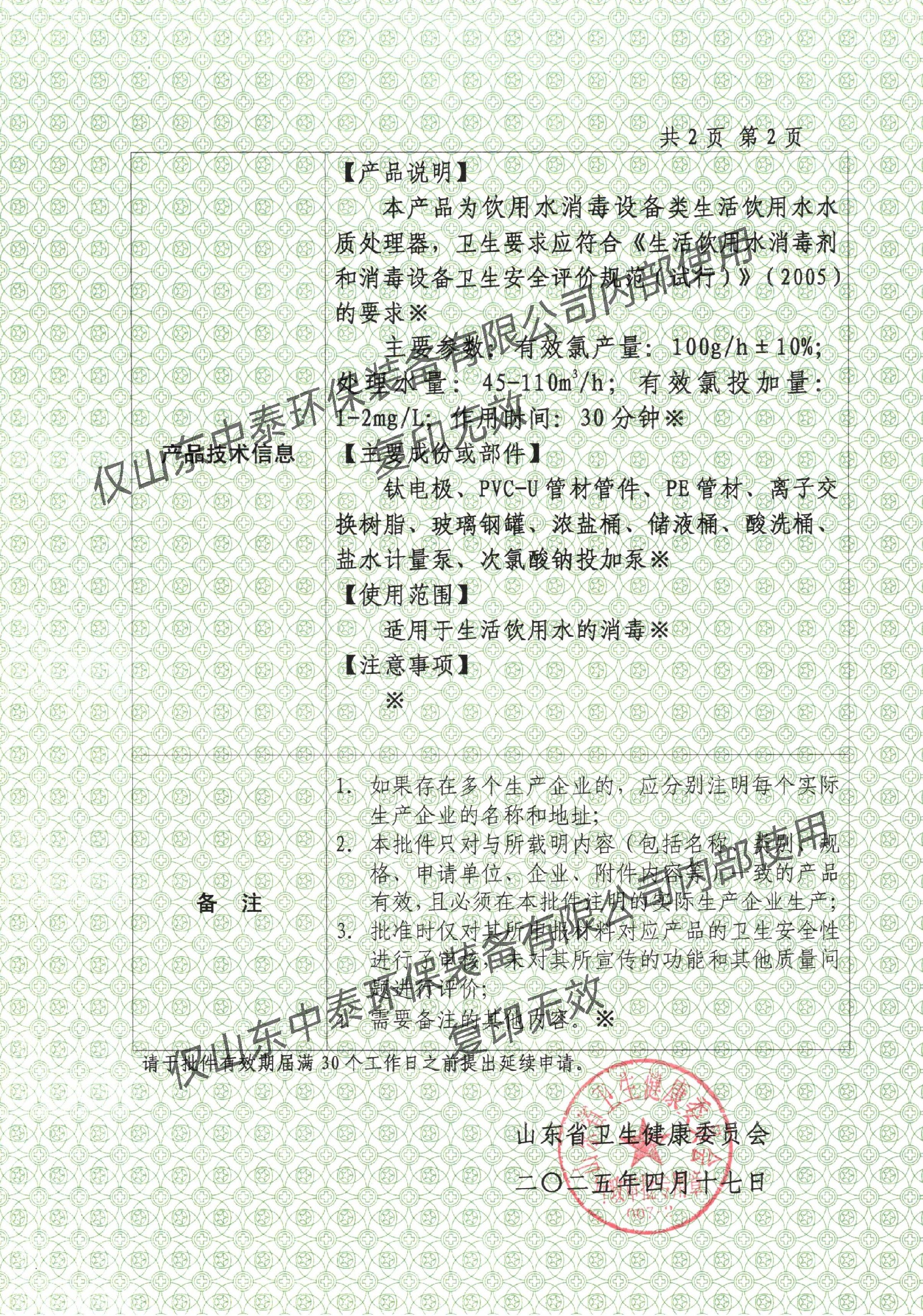 飲用水衛(wèi)生安全產(chǎn)品衛(wèi)生許可批件